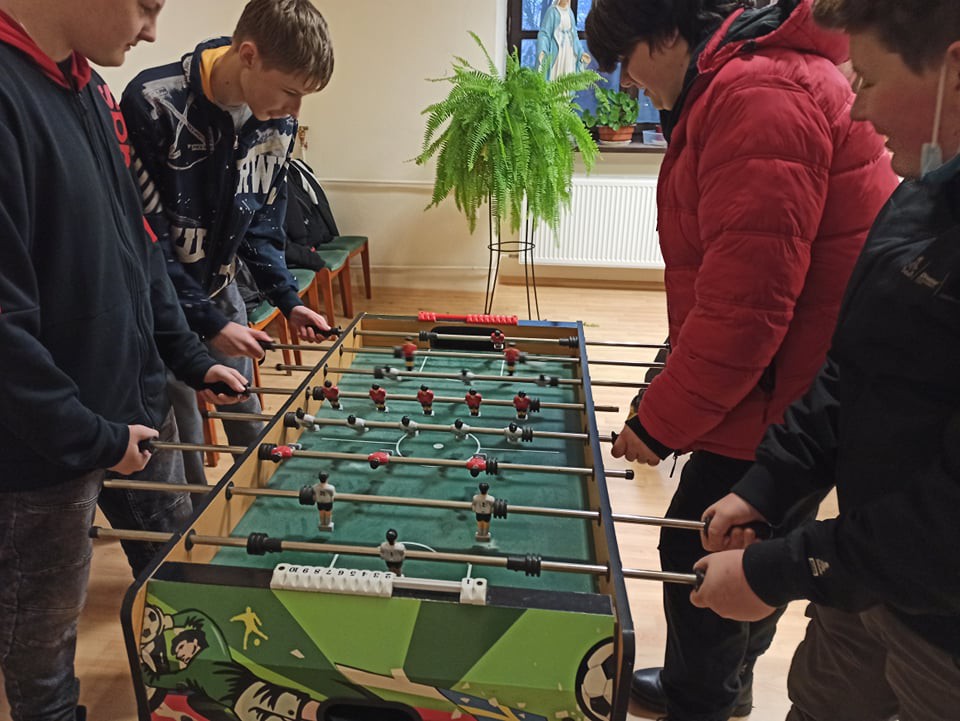 Spotkania był podzielone na kilka grup. Po wspólnym śpiewie kolęd przy szopce w kościele był czas na wspólny posiłek i integrację w salce na plebanii. Radością z faktu Narodzenia Jezusa uczniowie podzielili się także z potrzebującymi i niepełnosprawnymi dziećmi z "Domu Chłopaków w Broniszewicach, przygotowując dla nich kartki świąteczne, które w liczbie ponad 100 zostały wysłane. Dziękujemy za dobro, które się wydarzyło w tych dniach!